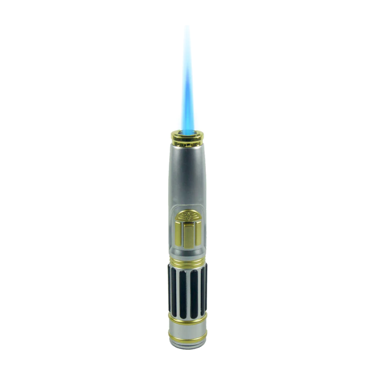 Compact and powerful with a single jet flame, windproof design, and adjustable intensity. Includes a safety lock for secure use and is fully refillable with butane for long-lasting performance. Ignite your inner Jedi today!
